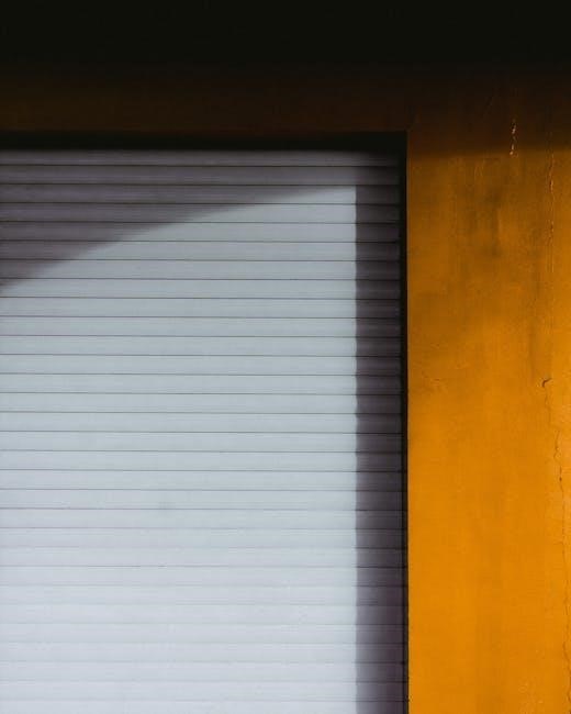 Addressing issues like doors not opening or closing properly‚ stopping mid-operation‚ or manual operation difficulties is crucial. These problems often stem from misaligned sensors‚ worn parts‚ or obstruction. Regular inspections and adjustments can prevent such issues‚ ensuring smooth and safe operation. Always check for obstructions and test safety features to maintain functionality. Proper maintenance helps avoid costly repairs and enhances overall performance. Troubleshooting these issues promptly ensures your garage door operates reliably and efficiently. Regular lubrication of moving parts and tightening hardware also play a key role in preventing operational problems. Stay proactive to avoid unexpected malfunctions and ensure seamless door movement. If issues persist‚ consulting a professional is recommended to diagnose and resolve complex problems effectively. By addressing these concerns‚ you can extend the lifespan of your garage door opener and maintain its optimal performance. Always prioritize safety when performing repairs or adjustments to avoid accidents. Familiarize yourself with your opener’s specific features and requirements to tailor your troubleshooting approach. This guide provides tailored solutions to common operation issues‚ helping you restore functionality quickly and safely. Remember‚ consistent maintenance is the cornerstone of a trouble-free garage door opener system. Don’t overlook minor issues‚ as they can escalate into major problems over time. Stay informed and take proactive steps to ensure your garage door operates smoothly and securely. Your safety and convenience depend on it. Regularly review and implement the recommended maintenance routines to keep your system in top condition. Troubleshooting garage door operation issues requires patience and attention to detail‚ but with the right approach‚ most problems can be resolved efficiently; Always refer to your user manual for model-specific guidance and best practices. By following these steps‚ you can enjoy a reliable and efficient garage door opener for years to come. Keep your garage door functioning at its best with consistent care and timely interventions. Addressing operation issues promptly prevents them from becoming major inconveniences. Stay vigilant and maintain your system to ensure uninterrupted service. Your garage door opener is a vital part of your home’s functionality‚ so treat it with the care it deserves. Regular checks and timely repairs will save you time and money in the long run. Don’t wait until it’s too late—address operation issues today for a smoother tomorrow. Your garage door opener’s performance is in your hands‚ so take charge and keep it running smoothly. Remember‚ a well-maintained garage door opener is not just convenient but also a safer option for your household. Prioritize its upkeep to enjoy years of trouble-free service. Garage door operation issues are manageable with the right knowledge and tools. Empower yourself to resolve problems confidently and efficiently. Your garage door opener will thank you. Keep your garage door opener in prime condition by addressing operation issues head-on. Your home’s security and convenience depend on it. Don’t let operation issues disrupt your daily routine—take control and fix them today. A smoothly operating garage door opener is just a few steps away. Seize the initiative and ensure your system runs flawlessly. Your peace of mind is worth the effort. Garage door operation issues are solvable with patience and the right approach. Take the first step towards a hassle-free experience. Your garage door opener’s optimal performance is achievable with consistent care. Make it a priority to address operation issues promptly and effectively. Your home deserves nothing less than the best. Keep your garage door opener running smoothly with regular checks and timely interventions. It’s an investment in your home’s functionality and your own convenience. Don’t let operation issues get the better of you—resolve them today for a better tomorrow. Your garage door opener’s reliability is in your hands‚ so take charge and keep it in top shape. Remember‚ a well-maintained garage door opener is a homeowner’s best friend. Show it the care it needs to serve you faithfully for years to come. Garage door operation issues don’t have to be a headache. With the right strategies‚ you can overcome them and enjoy a seamless experience. Take the first step now; Your garage door opener’s performance is a reflection of your home’s overall functionality. Keep it running smoothly to maintain your home’s efficiency and security. Don’t let operation issues stand in your way—resolve them today and enjoy peace of mind. Your garage door opener deserves attention‚ and so does your home. Make the commitment to address operation issues and reap the benefits of a well-maintained system. Garage door operation issues are not just inconvenient; they can also pose safety risks. Address them promptly to ensure your home remains secure and functional. Your garage door opener’s smooth operation is essential for your daily routine. Don’t let issues disrupt your life—fix them today and restore convenience. A properly functioning garage door opener is more than just a convenience; it’s a necessity for modern living. Keep yours in top condition. Garage door operation issues can be frustrating‚ but with the right guidance‚ they’re manageable. Take control and resolve them today for a better tomorrow. Your garage door opener’s performance impacts your home’s functionality. Keep it running smoothly with regular checks and timely repairs. It’s worth the effort. Don’t let garage door operation issues get you down. With patience and the right techniques‚ you can overcome them and enjoy a hassle-free experience. Your garage door opener’s reliability is key to your home’s s