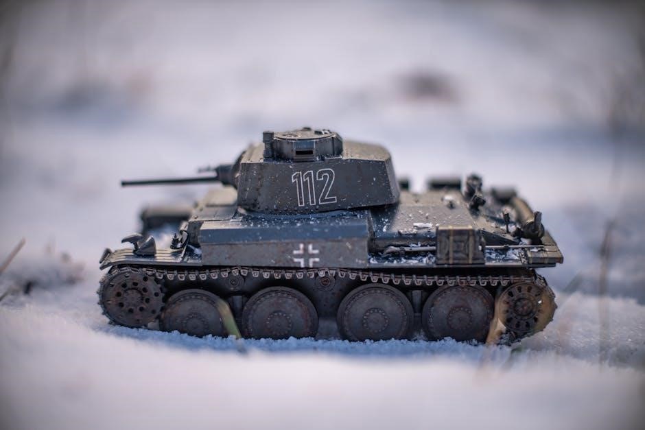 Effective tank strategies necessitate direct fire support‚ utilizing hull-down positions‚ and building penetration techniques․ Coordinated infantry-tank attacks are essential for success․